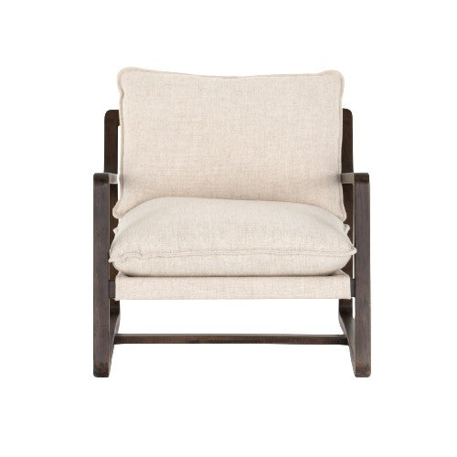 The perfect place to relax or curl up with a good book. Hand-shaped oak frame supports deep, low seating covered in cream-colored performance-grade upholstery exclusive to Four Hands.