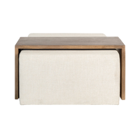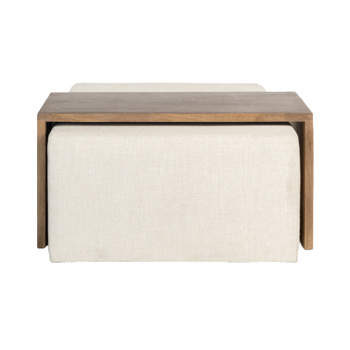 Modern meets function meets style with our eye-catching box style Asher ottoman. The subtle linen fabric will accentuate your living space and the brindle ash finish tabletop will take entertaining and relaxing to the next level.