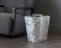 A contemporary and alluring end table. Sculpted from concrete and overlaid with a marble-look finish. The shapely design is eye-catching and unique for placement in residential and contract settings. Stocked in small and large end table sizes. Can be grouped together or placed on its own. Also available in our coordinating Ava coffee table. Suitable for indoor and covered outdoor spaces.