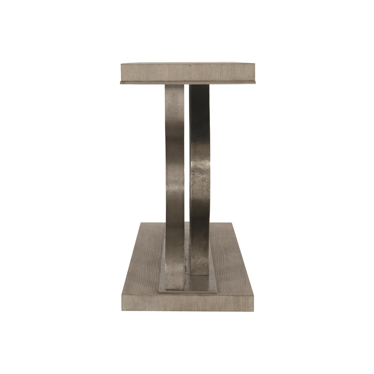 Bernhardt Interiors offers high-design furniture with an eclectic edge. In the Camarillo console table, serpentine lines of hand-wrought cast aluminum intertwine in a captivating open design. The sandblasted oak top and base are finished in Weathered Greige, creating a contemporary rustic feel. With its distinctly modern style and artistic design, this console lends sophistication to any interior.