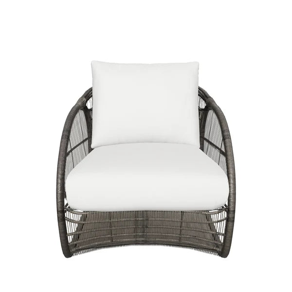 An open show of modern art in action, the Tulum Lounge Chair amazes with its airy and circular form. Skillfully constructed with a black powder-coated aluminum frame and upholstered in louis cream outdoor performance fabric, this sculptural wonder with rounded sides and a suspended seat is stylish and stunning.