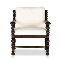 Inspired by traditional Welsh furnishings and designed and crafted to look like an heirloom, our Davies chair promises to be a stunning focal point in your home. This eye-catching chair features traditional bobbin legs with an intentional, subtle worn finishing. Additional heirloom-inspired details include spindle stretchers below and rounded paddle arms that conform to the palm of the hand.