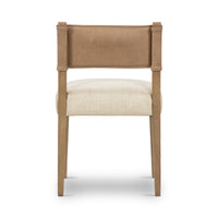 Mixed materials are at their finest for our Ferris dining chair. Solid parawood forms a slight, simple frame for squared seating upholstered in high-performance fabric. Tan top-grain leather backing takes this modern-minded dining chair to the next level.