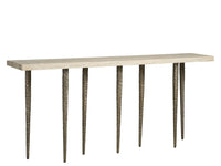 Our Lowry Console is a striking piece of modern design that celebrates the interplay of positive and negative space. Its slender, nickel-finished metal legs create an airy, almost ethereal quality, while the solid white travertine top provides a grounding element. This bold combination of materials and minimalist design makes the Lowry Console a captivating focal point for any hallway or entryway.
