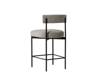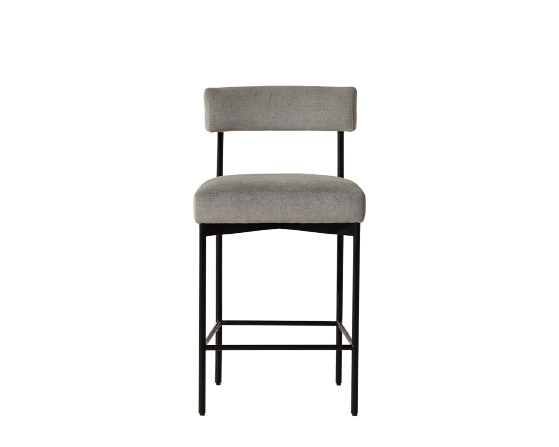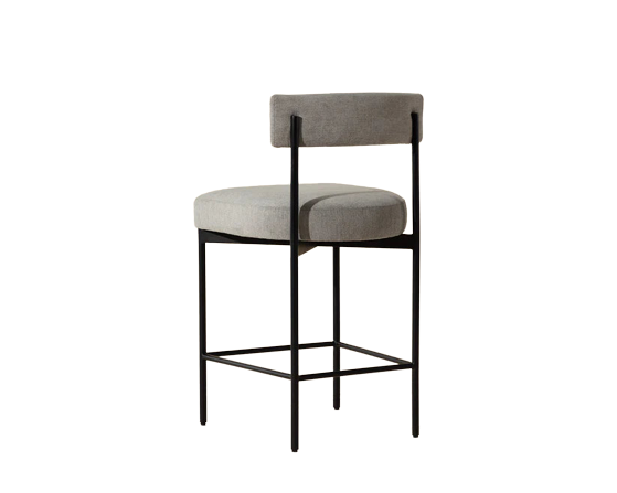 Exude modern style with this open back counter stool. Stocked in polo club stone performance fabric with a black powder-coated steel frame. Performance fabric is moisture repellent, durable and easy to clean.
