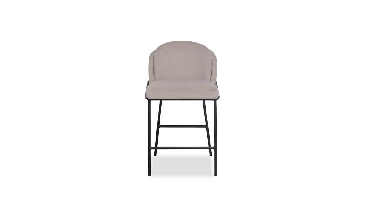 Perfect for modern dining areas, our Wallen counter combines sophisticated design with functional versatility. Each piece features a sleek, body upholstered in smooth, stone or black velvet fabric, providing comfort and elegance. The sturdy steel base comes in a stunning matte black powder coat.