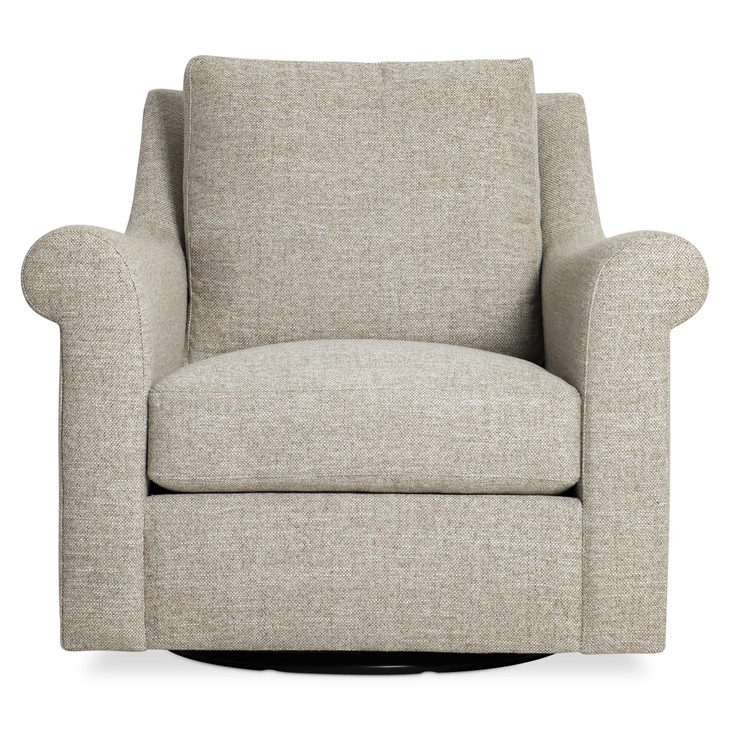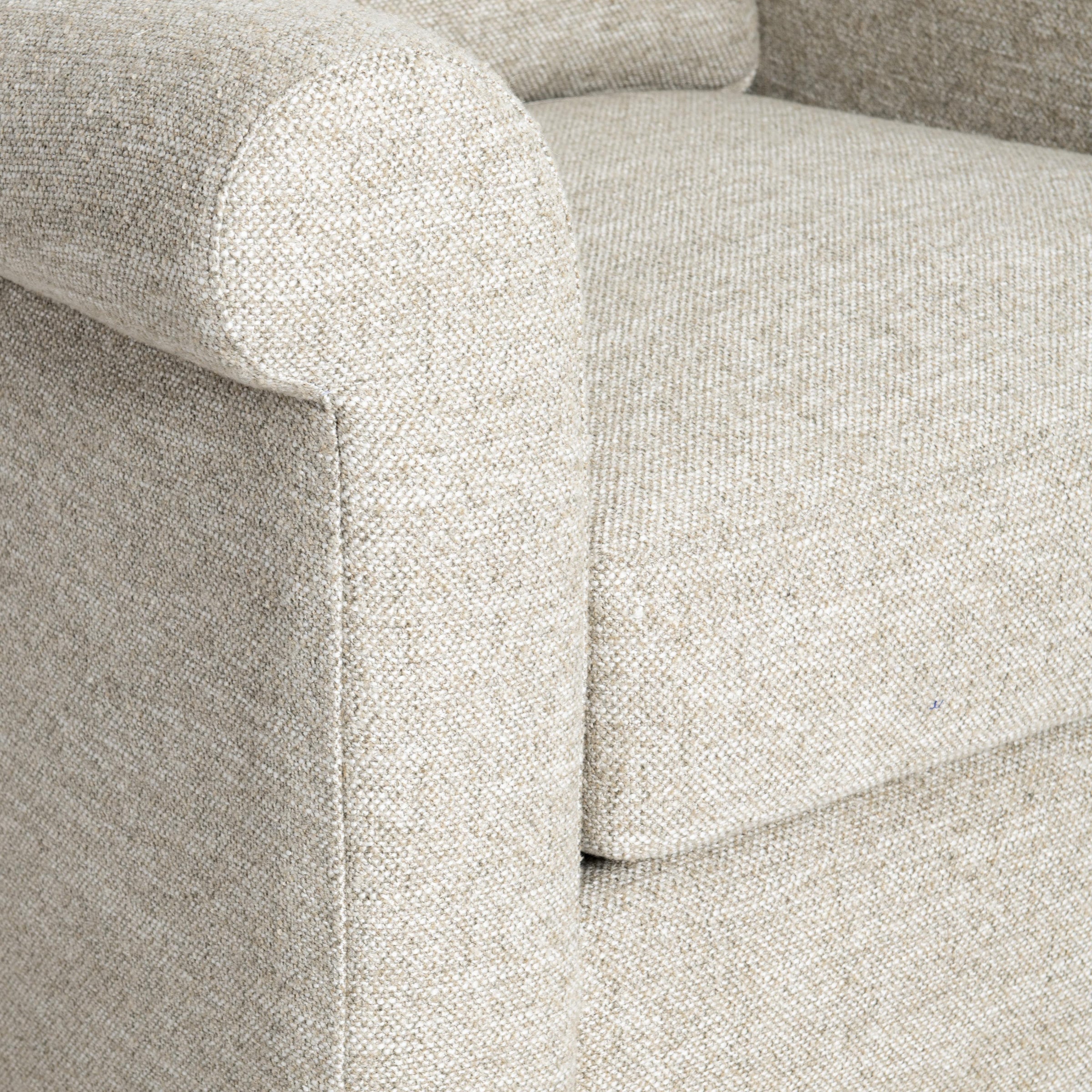 A traditional rolled arm finds a new freedom of expression with a gentle scroll on our Keirnan swivel chair. The arm sweeps up to a softly sloping back that offers style and comfort. Knife-edge cushions complete the plush design for a modern take on a classic look.
